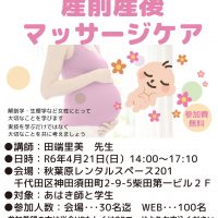 ●講師 田端里美 先生 国立障害者リハビリテーションセンター 自立支援局福岡視力障害センター 厚生労働主任教官 ●内容 「産前産後マッサージケア」 ●開催日時 R6年4月21日(日)14:00~17:10(13時半開場) …