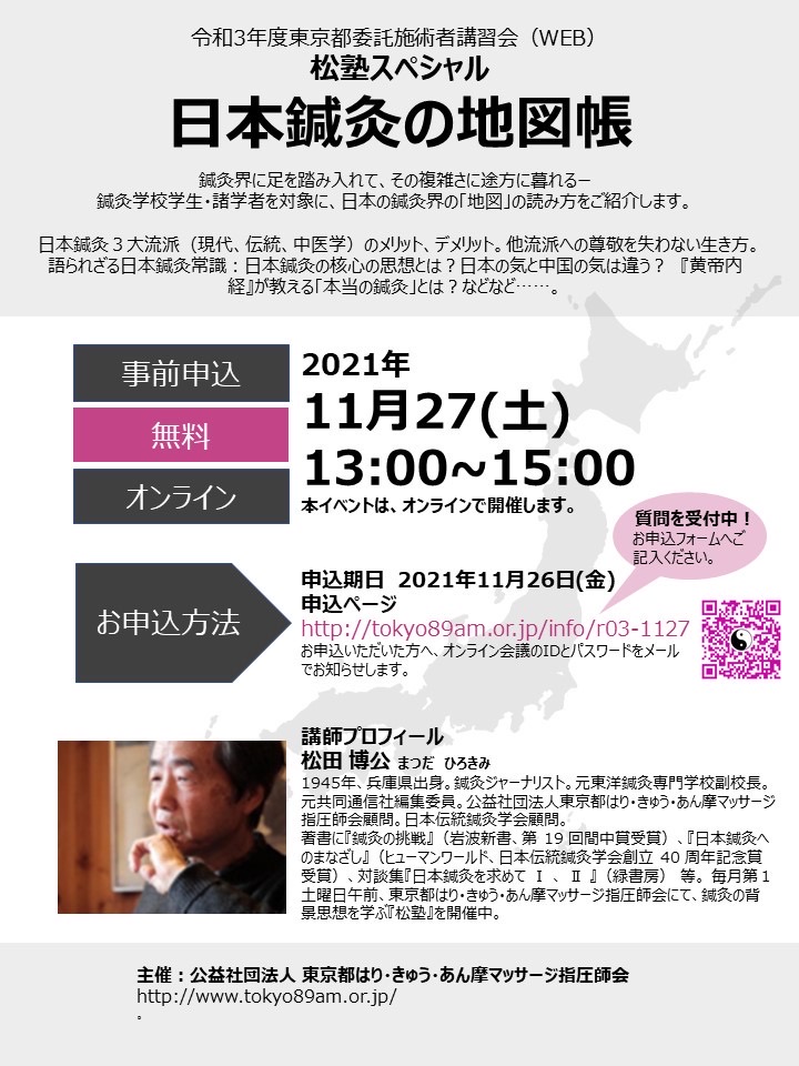鍼灸学校学生・諸学者を対象に、日本の鍼灸界の「地図」の読み方をご紹介します。