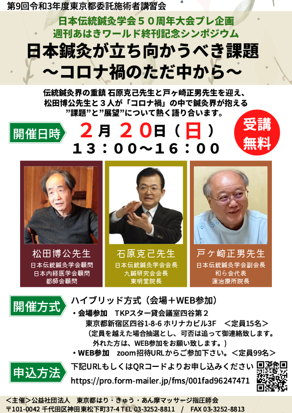 シンポジウム「日本鍼灸が立ち向かうべき課題〜コロナ禍のただ中から」