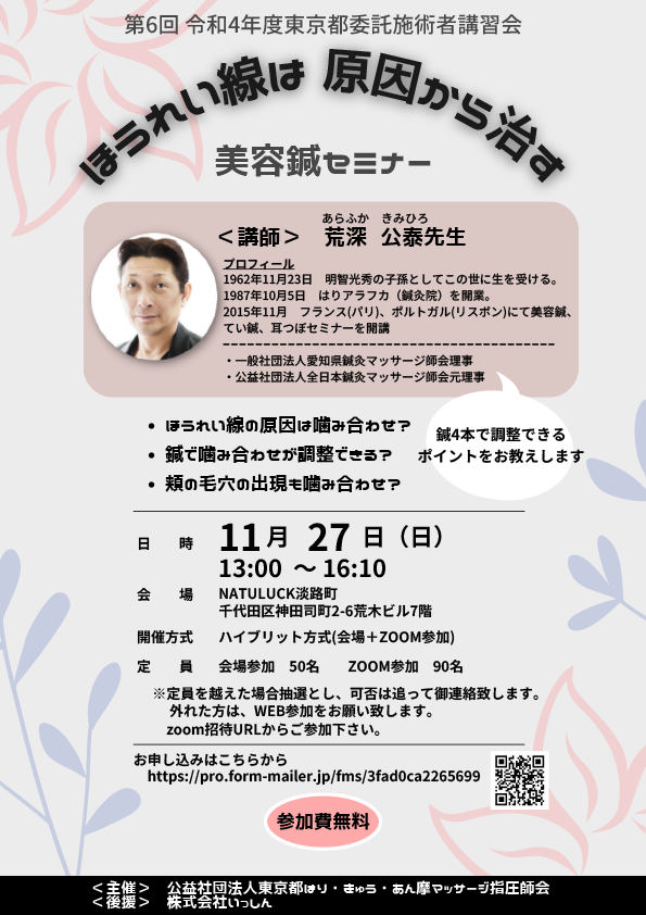 『ほうれい線は原因から治す 美容鍼セミナー』