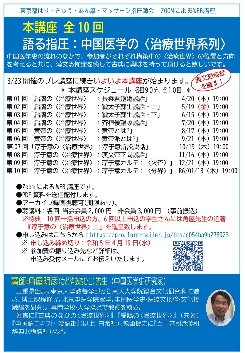 第10回 「淳于意の〈治療世界〉:淳于意カルテ:〈分界〉」R6/01/18(木)19:00