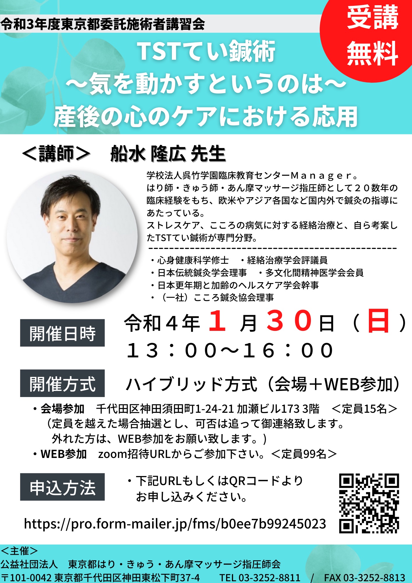 (※応募者多数につき密を避けるため、都師会会館3階会議室から変更させていただきました)